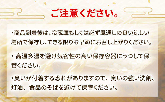 | 消費期限 | 【賞味期限】 *商品到着後は、冷蔵庫もしくは必ず風通しの良い涼しい場所で保存し、できる限りお早めにお召し上がりください。 *高温多湿を避け気密性の高い保存容器にうつして保管ください。 *臭いが付着する恐れがありますので、臭いの強い洗剤、灯油、食品のそばを避けて保管ください。 |
