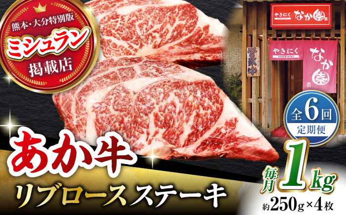 千年の草原から生まれた『くまもとあか牛』 【6回定期便】リブロースステーキ 1kg(250g×4枚)【有限会社スイートサプライなかぞの 】リブロース ステーキ ステーキ定期 熊本 [ZBV027]