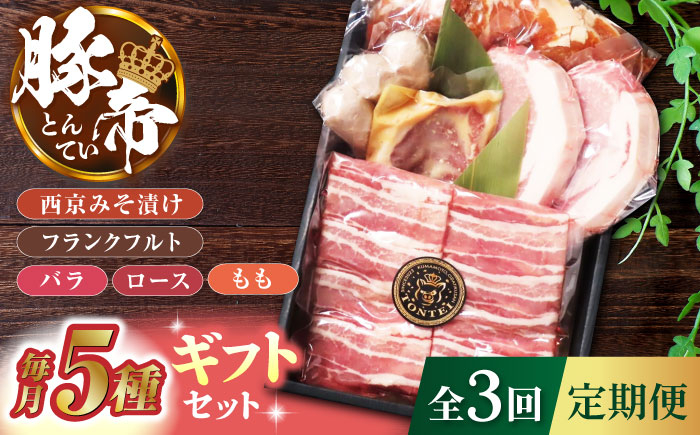 ギフト・贈物にぴったり! 【3回定期便】豚帝 ギフトセット 【KRAZY MEAT(小田畜産)】 豚肉 豚 バラ ロース フランクフルト ステーキ 国産 九州産 [ZCP109]