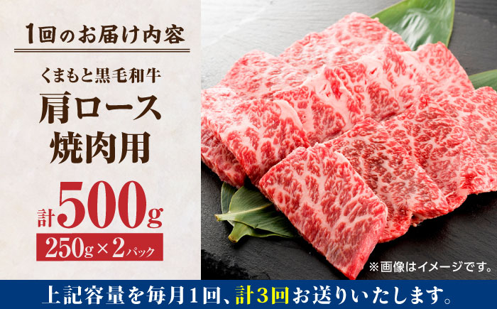 とろける霜降り、たまらない味わい 【3回定期便】くまもと黒毛和牛 焼肉用 肩ロース 500g(250g×2pc)【馬刺しの郷 民守】 熊本県産 九州産 和牛 お肉 肉 バラ 黒毛和牛 [ZBL064]
