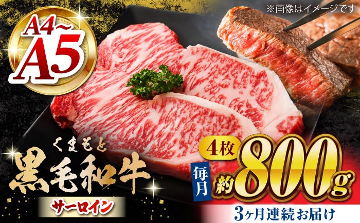 とろける霜降り、たまらない味わい 【3回定期便】くまもと黒毛和牛 サーロインステーキ 計800g(4枚)【馬刺しの郷 民守】 ステーキ サーロイン ヒレ 霜降り 熊本 熊本県 黒毛和牛 [ZBL053]