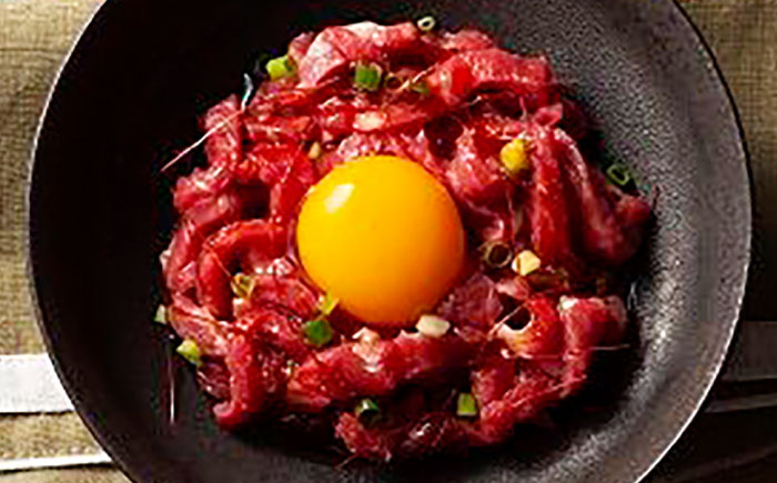 馬刺し用の新鮮な馬肉を丁寧にユッケに仕上げました。馬刺しの専門店こだわりのユッケは独特の触感と馬肉の旨みと甘味をお楽しみいただけます。
