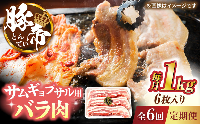 食べ応え抜群!サムギョプサル 【全6回定期便】豚帝 バラ肉 サムギョプサル カット 約1kg(1枚約170〜180g×6枚)【KRAZY MEAT(小田畜産)】 [ZCP155]