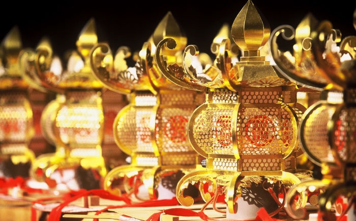 女性が頭に掲げて踊る「金灯籠」は、和紙と少量の糊で作られており、国指定の伝統的工芸品です!