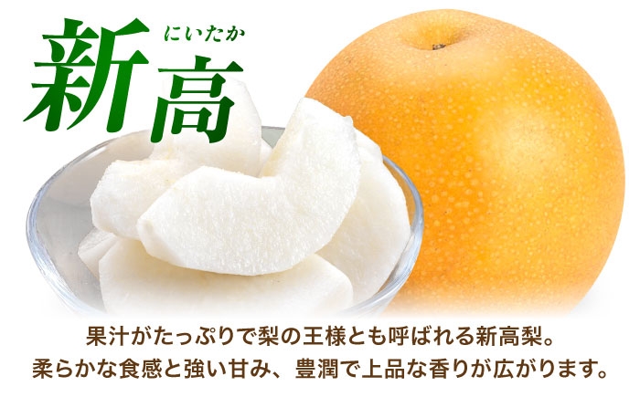 新高(にいたか)は、他の品種と比べても果汁がたっぷりで、柔らかな食感と強い甘み、豊潤な上品な香りが広がります。冷やしてそのままはもちろん、すりおろしてお肉料理のソース にもおすすめです!