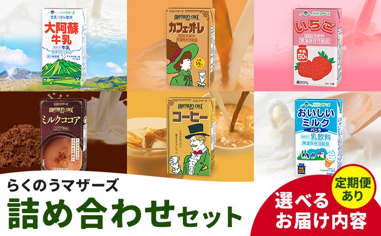 熊本県産のミルクをたっぷり使用! 定期便あり 常温保存可能 らくのうマザーズ 詰め合わせ セット合同会社たべたせいか《選べるお届け時期》熊本県 菊池市 カフェオレ いちご ミルクココア 大阿蘇牛乳 コーヒー おいしいミルクバニラ 乳飲料 乳性飲料 らくのうマザーズ ドリンク