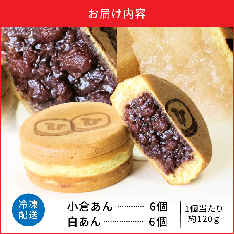 | 容量 | 小倉あん(つぶあん)、白あん(1個当たり約120g)各6個 |