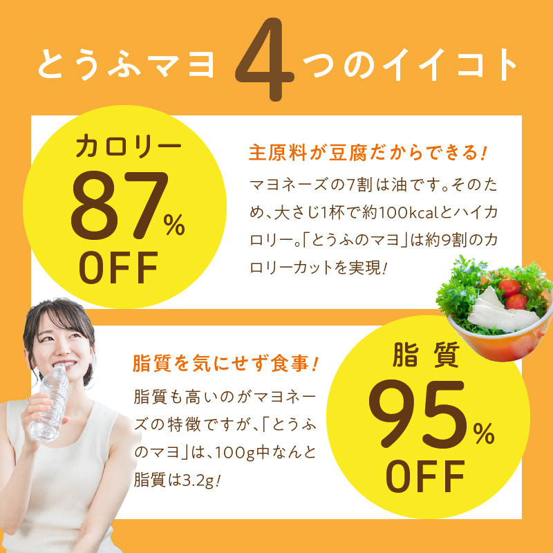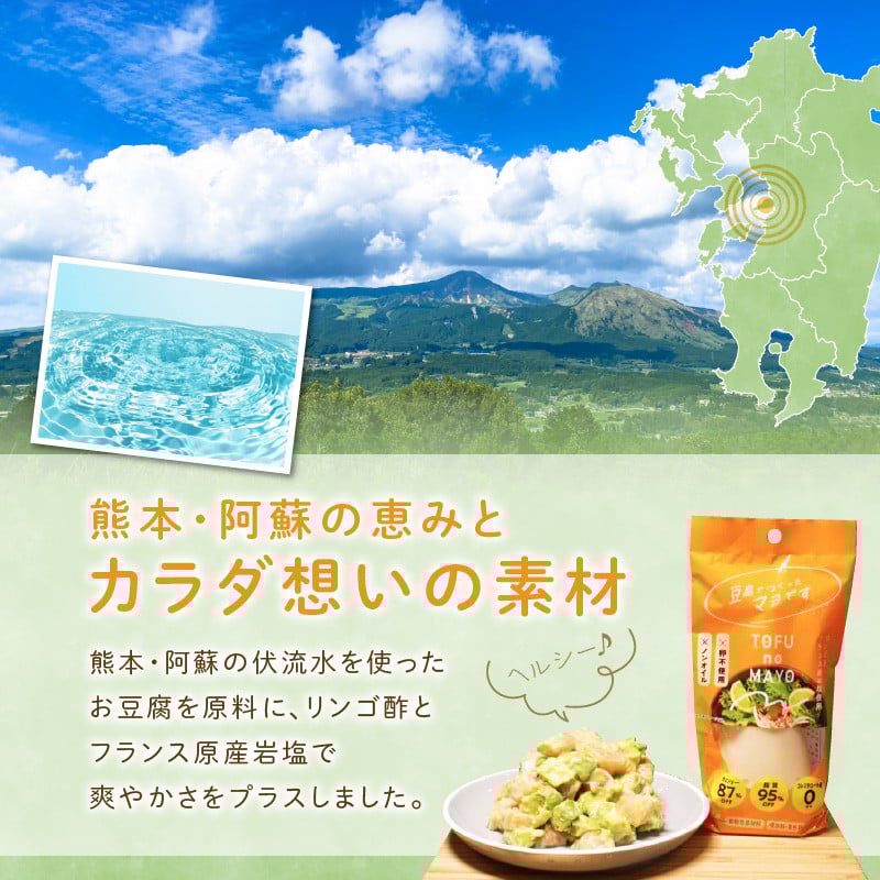 熊本・阿蘇の伏流水を使った豆腐を原料として通常のマヨネーズの食感を再現。