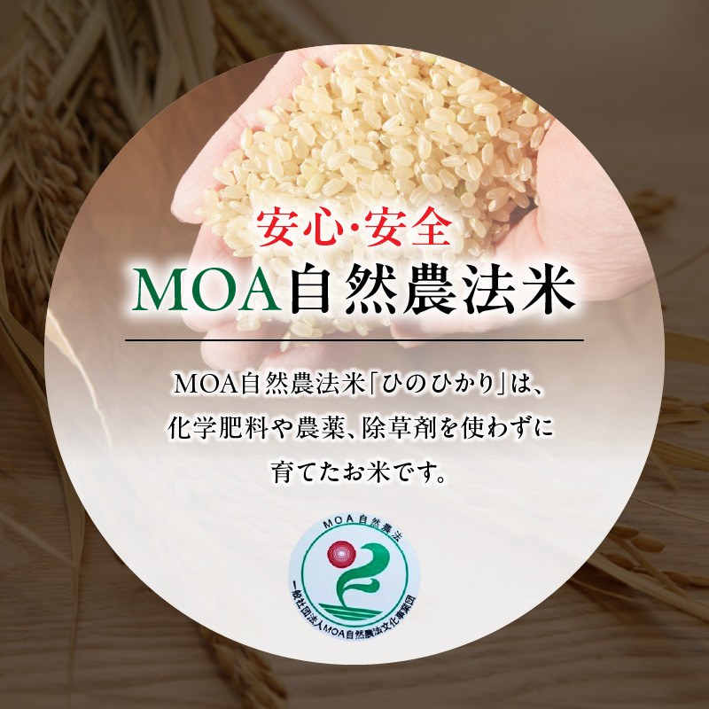 MOA自然農法米「ひのひかり」は化学肥料や農薬、除草剤を使わず育たお米です。