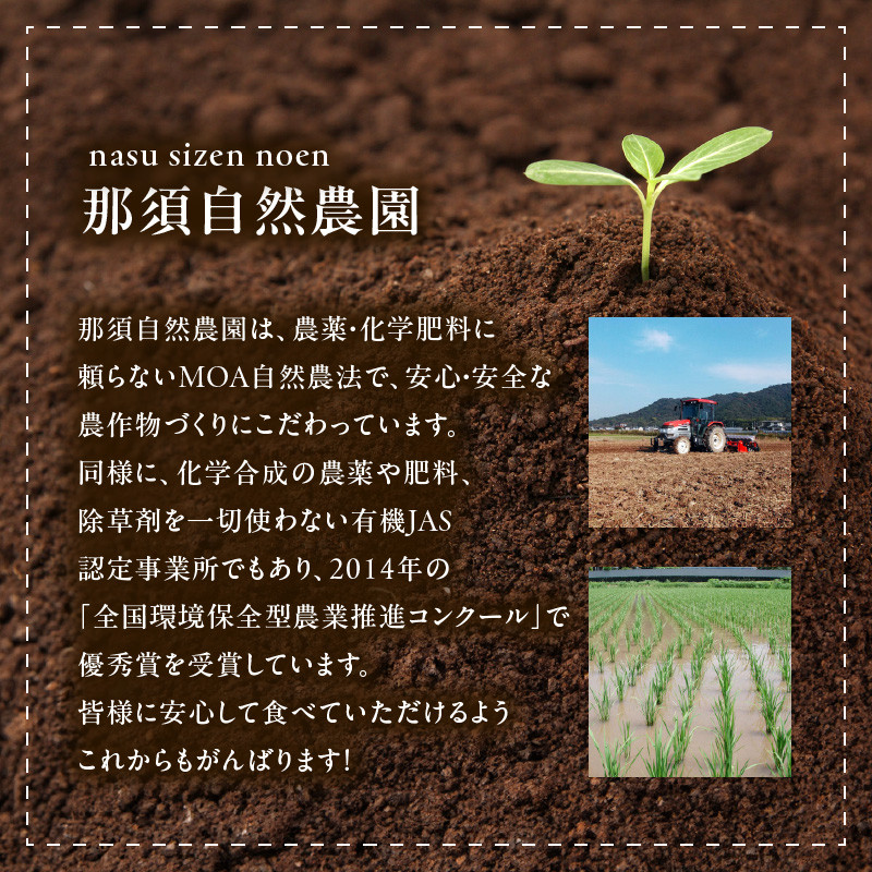 那須自然農園は、農薬・化学肥料に頼らないMOA自然農法で安心・安全な農作物づくりにこだわっています。