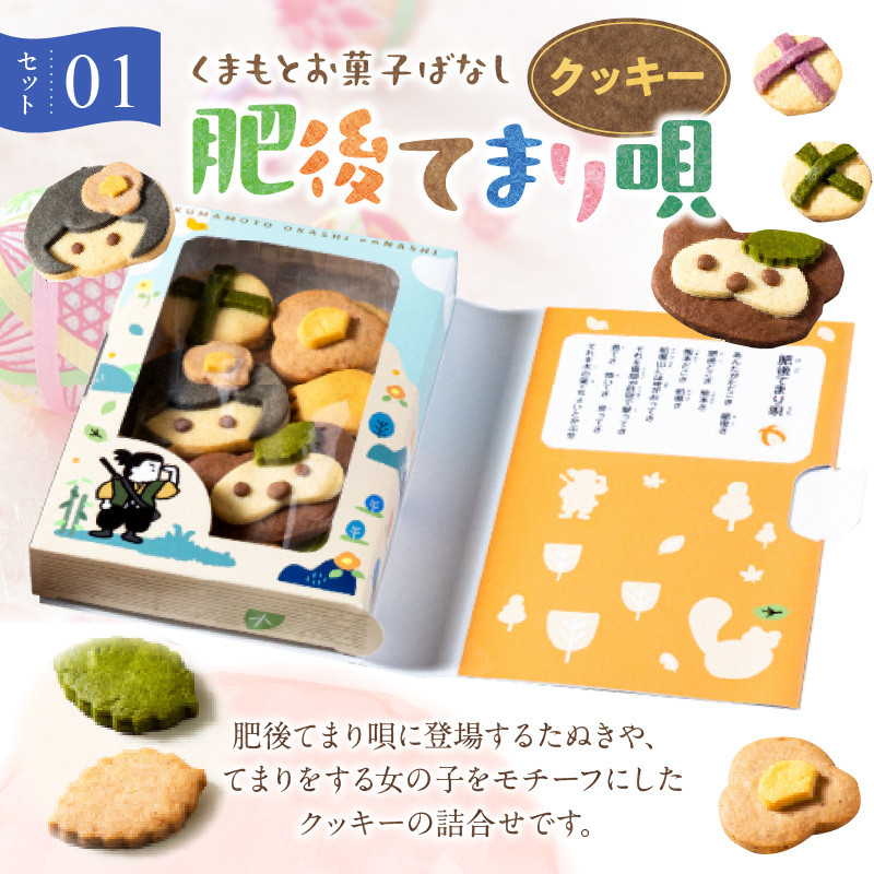 肥後てまり唄に登場するたぬきや、てまりをする女の子をモチーフにしたクッキー。