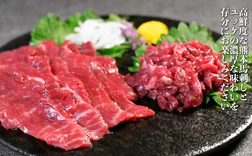 高鮮度にこだわったカナダ生まれ県内肥育の馬刺し赤身とユッケの合計500gセット。