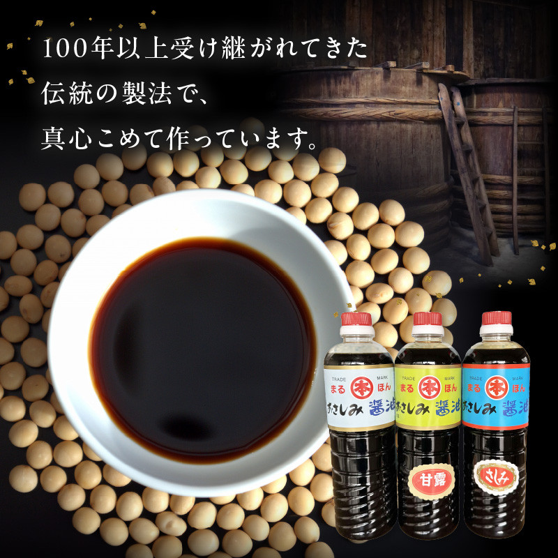 100年以上受け継がれてきた伝統の製法で作られている3種類のさしみ醬油です。
