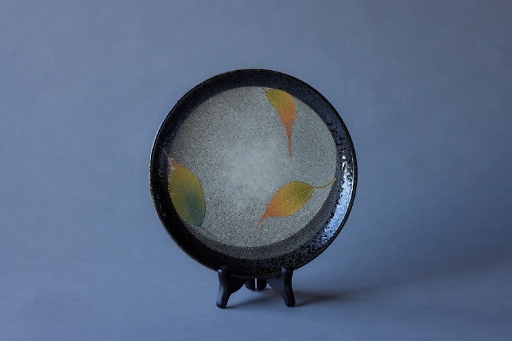 チョイス限定 【1点限りの限定品!】宇土市の土を材料にして焼き上げました。 蒼土窯 木の葉文 丸皿【熊本県伝統的工芸品】 _U23-0196