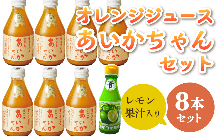 JR九州のクルーズトレイン『ななつ星in九州』採用! 【ななつ星in九州 採用 オレンジジュース 】あいかちゃん レモン 果汁 入り セット(レモン果汁150ml 1本、あいかちゃん果汁180ml 7本)