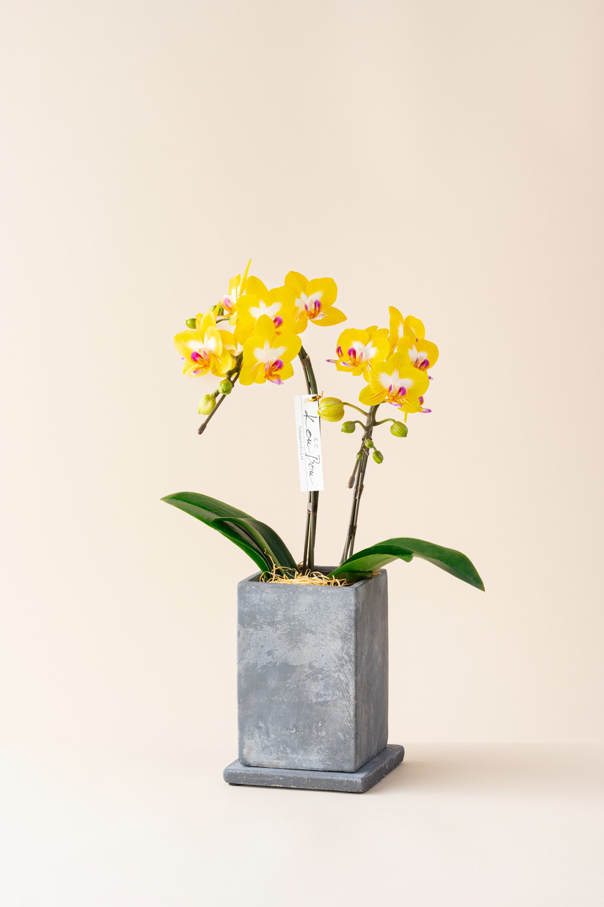 可愛い飾る場所を選ばない素敵な蘭でした。ちょっとした手違いにも直ぐに対応していただき生産者さんの優しさを感じました。大輪の胡蝶蘭も華やかですが置き場所が限られるので、この可憐な洋ラン、しかもコンクリート鉢がモダンでどの部屋にも合いました。