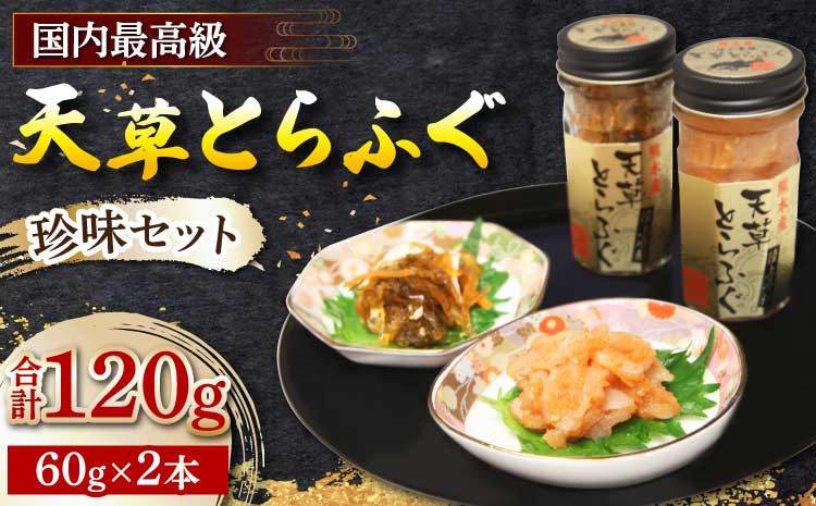 松前漬、旨辛明太、とらふぐだけで作った こだわりの逸品です。 とらふぐ ふぐ 珍味 計120g (旨辛明太和え60g・本皮松前漬け60g) 計120g フグ ふぐ 魚介類 松前漬 明太子 冷凍 国産 熊本県産