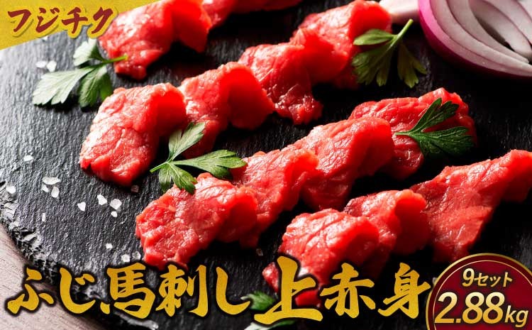 生産から加工まで心を込めて。専門店がお届けする至福の味わい。 フジチクふじ馬刺し上赤身セット 計約2880g(約80g×4個セット)×9セット ふじ馬刺し 馬刺し 馬刺 馬肉 赤身