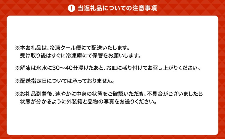 解凍は氷水に30~40分浸けたあと、お皿に盛り付けてお召し上がりください。