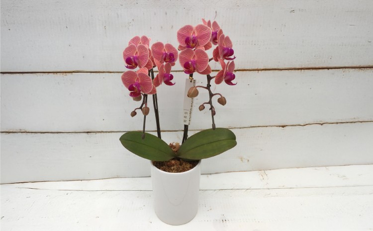 風呂敷や鉢、装飾のデザインにこだわったミディサイズの胡蝶蘭です。