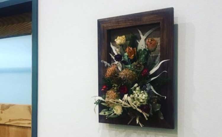 ドライフラワーをアレンジして壁に飾ると立体的な絵画のようで華やかに。