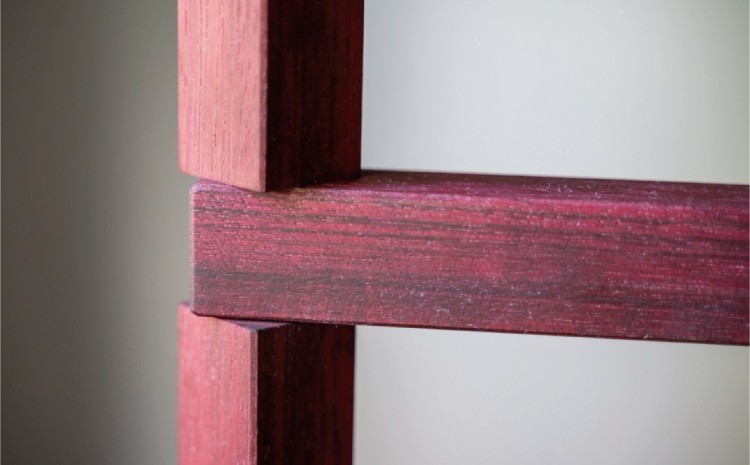 美しい紫色と木目が特徴のパープルハート製のハンガーラック