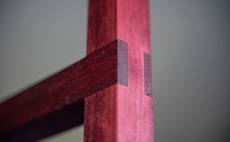美しい紫色と木目が特徴のパープルハート製のハンガーラック。