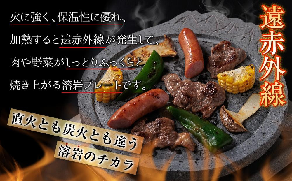 溶岩は、火に強く保温性に優れ、加熱することになり遠赤外線が発生します。遠赤外線は、食品表面から1ミリの深さで吸収され熱に変わり伝導によって熱が伝わります。溶岩の表面には、水分を吸収する無数の気泡(多孔質構造)があり余剰な脂質を吸収します。その副産物として油を引かなくても(孔より適度に油が上がる為)食材が貼り付かず、脂質が直接火に当たらないため煙が立ちにくく室内でも調理できます。