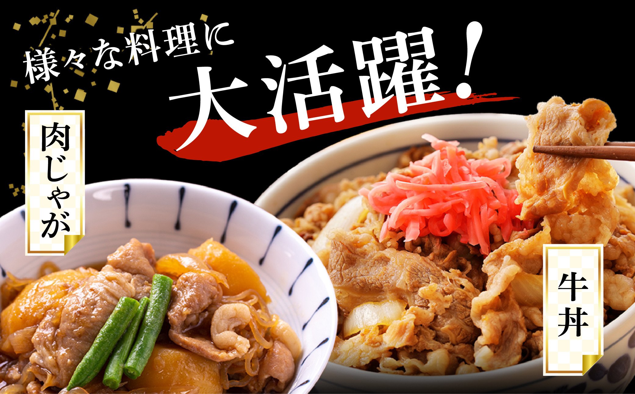 カレーなどの煮込み料理や牛丼、肉じゃがなどアレンジいろいろ。そのまま焼いて食べるだけでも美味しいので、忙しい時のおかずとしても重宝します。