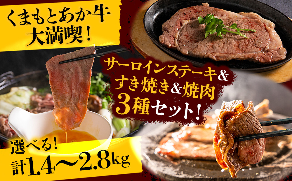 熊本のブランド牛”あか牛”を3種の食べ方で楽しめるあか牛大満喫セット! くまもとあか牛大満喫!サーロインステーキ&すき焼き&焼肉3種セット 選べる内容量 赤牛 あか牛 あかうし ふるさと納税 サーロイン ステーキ サーロインステーキすき焼き 焼肉 バーベキュー 食べ比べ セット 牛肉 褐色和牛 和牛 冷凍 ごちそう メイン ジューシー おすすめ お取り寄せ お祝い おもてなし 豪華 贅沢 ご褒美 贈答用 ギフト 贈り物 おうちごはん 熊本県 阿蘇市