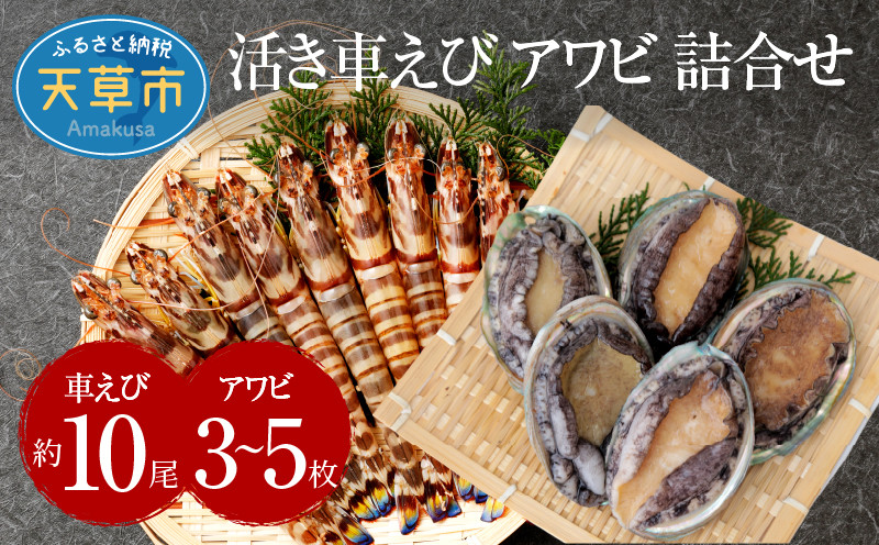 \新鮮な海の幸を活きたままお届け!/ 天草灘で育った活きの良い「活き車えび」と「活きアワビ」を 活きたままお届けいたします。 天草の最高級の海の幸をぜひ、ご賞味ください。 ※お届け日指定必須のお礼品です。 【配送可能期間】をご確認のうえ、ご入金日より20日後以降のお受取りご希望日を、ご寄附画面「お礼の品のお届け先」よりご指定をお願いいたします。 ※配達時間の指定は14時以降より可能(午前中の指定不可) 【配送可能エリア】 ◆西日本のみ(東日本・沖縄・離島不可) ※配送エリア外からのお申込みも可能ですが、活きたままでお届けできない可能性がございます。ご了承の上うえ、お申し込みください。 【配送可能期間】 2025年7月~2026年2月 【配送不可日】 お盆(2025年8月9日~8月19日)、年末年始(2025年12月27日~2026年1月8日) 【注意事項】(※必ずお読みください※) ※貝類には鮮度とは関係なく菌が付着している場合があり、 体調がすぐれない方が召し上がると中毒症状が現れる可能性がございます。 ※召し上がって体調を崩された場合でも、提供元・自治体は責任を負いかねます。 ※北海道、沖縄、東北、関東、中部地方、離島へのお届けは不可です。 配送エリア外からのお申込みも可能ですが、活きたままでお届けできない可能性をご了承の上うえ、お申し込みください。 ※出荷後のご不在、指定日変更による品質保証は致しかねます。 ※届いたときに「動いてない(活きてない)」場合は過熱調理ください。 ※お刺身で召し上がる場合は活きている間にお召し上がりください。 ※配達時にご不在等の場合は品質保持のため、状況により「冷凍便」へ切り替えてお届けとなる場合がございますのでご了承ください。その場合は必ず加熱してお召し上がりください。 ※天候や配送業者の配送状況により、ご指定日より1日ほど遅れが生じる可能性がございますので、予めご了承ください。 ※ご希望の到着日は、お召し上がりになる日をご指定下さい。 (賞味期限が短いため、お届け日にご賞味ください。) ※ご指定日やご住所の変更は、ご指定日の3週間前までにご連絡くださいますようお願い申し上げます。 (ご指定日近くのご連絡は対応ができない場合もございます。)