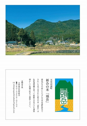 河浦町新合のシンボル頭岳のふもとで生産されたおいしいお米です。
