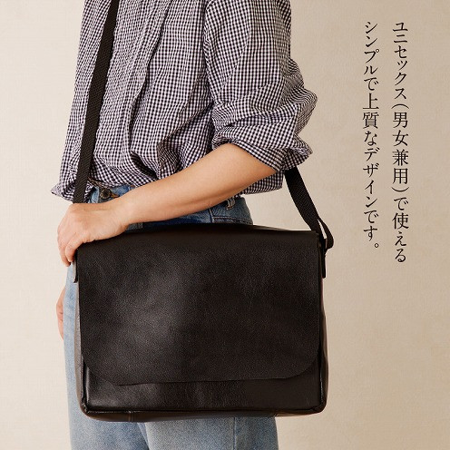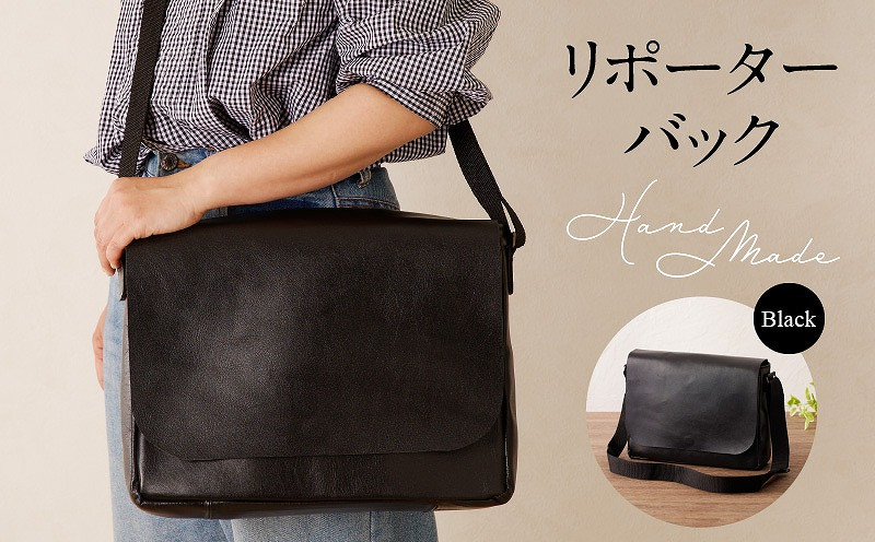 ハンドメイド リポーターバック 黒 スマートで機能的 ショルダーバック バック 鞄 男女兼用 ユニセックス 手作り 革 タンニン鞣し スムースレザー 熊本県 天草市