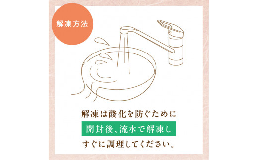 解凍は酸化を防ぐために開封後、流水で解凍しすぐに調理してください。