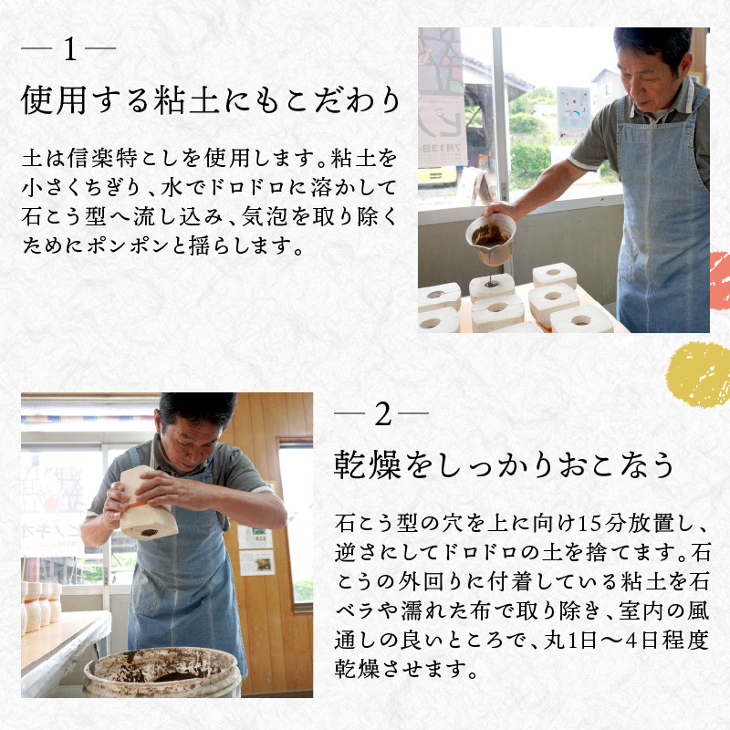 大小18の島からできている熊本・天草の御所浦町は、古くから化石が出ることで知られ、化石の島として有名です。中でもアンモナイトは、化石採集体験でも時折見つかる人気の化石。天草土人形を今に受け継ぐ下浦土玩具で製作しました。
