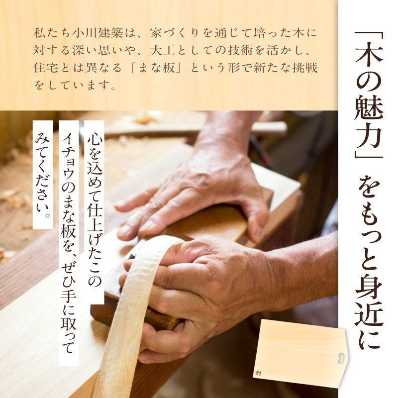 私たち小川建築は、家づくりを通じて培った木に対する深い思いや、大工としての技術を活かし、住宅とは異なる「まな板」という形で新たな挑戦をしています。まな板は、毎日の暮らしの中で誰もが使う身近な道具。その一つひとつに、木が持つぬくもりや魅力を込めることで、私たちはただの品ではなく、ご利用者様とのつながりや新しいコミュニケーションを生み出しています。