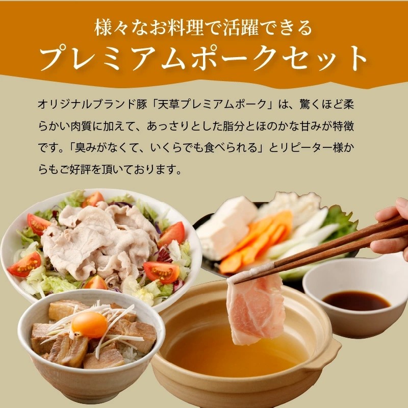 様々なお料理で活躍できるプレミアムポークをセットにしました。
