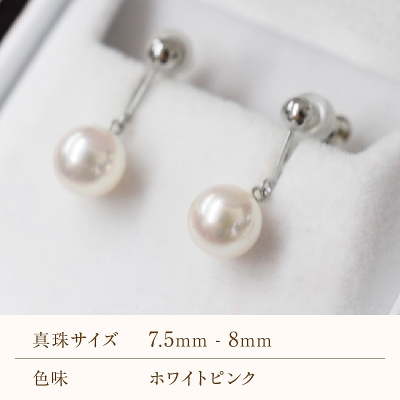 チョイスPayポイントと交換できる品 S085-594_あこや真珠 天草 イヤリング 7.5mm - 8mm ホワイトピンク 真珠