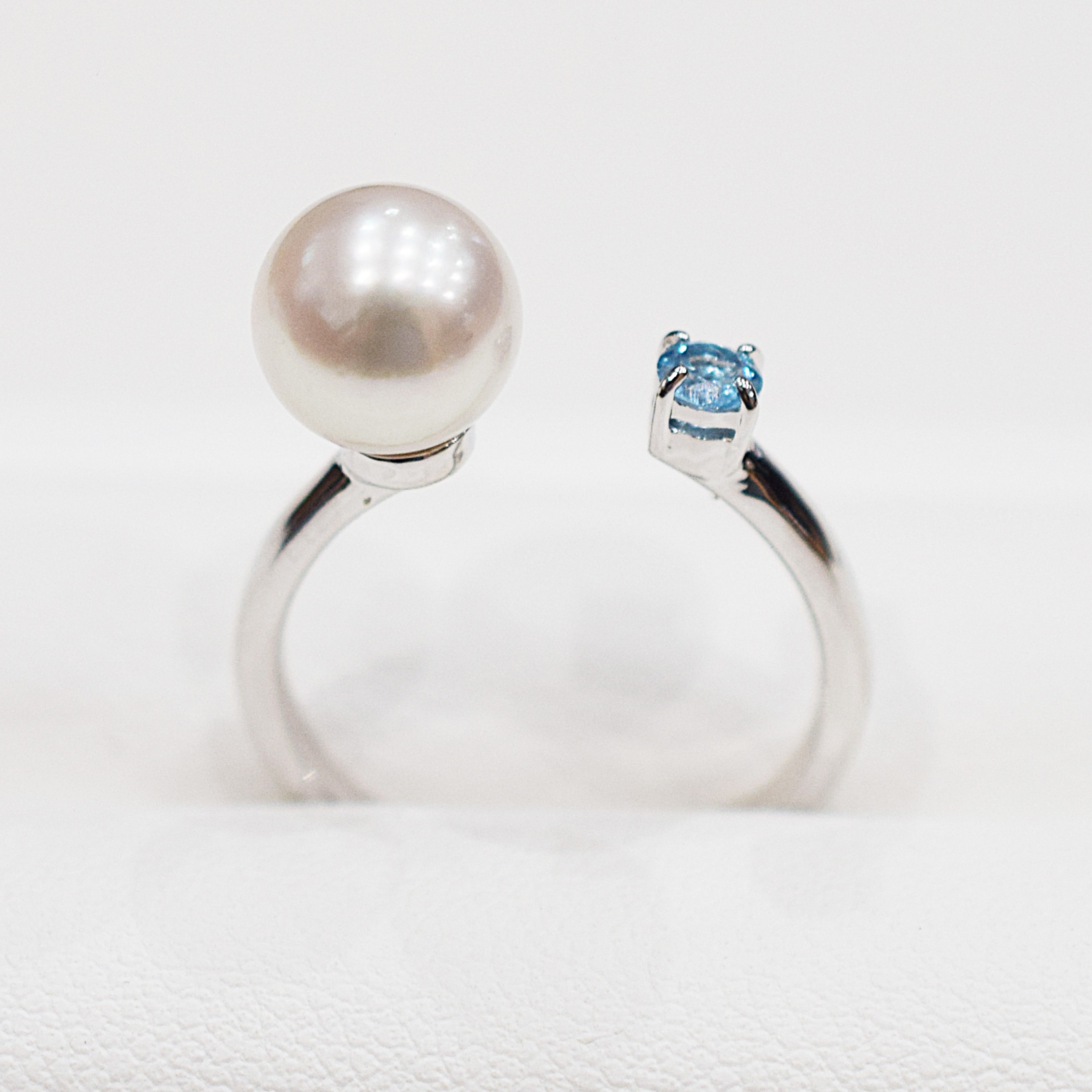 チョイスPayポイントと交換できる品 S085-452_あこや真珠 リング 7.5mm - 8mm 天草 ホワイトピンク ブルートパーズ 真珠 (G:14号)