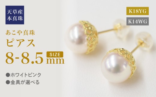 チョイスPayポイントと交換できる品 S101-426-sku_あこや真珠 天草 熊本 ピアス 菊皿 8mm - 8.5mm 花型 ホワイトピンク K18 K14 本真珠
