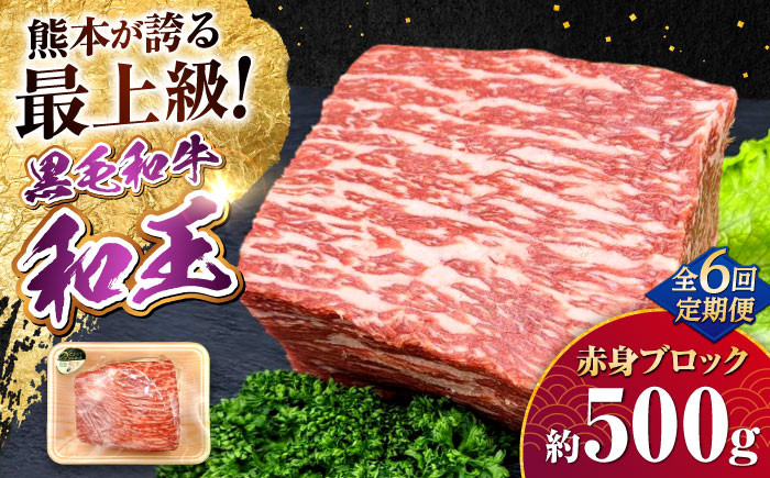 脂が少なくあっさりとし水分量が多いウチモモはローストビーフに仕上げやすいお肉です 【全6回定期便】熊本県産A5等級 黒毛和牛 和王 赤身ブロック 約500g 計約3kg【帝神志方ミート 株式会社】 牛 肉 モモ もも 赤身 ブロック ローストビーフ 焼き肉 バーベキュー A5 和牛 国産 熊本 定期便 [AYCH033]