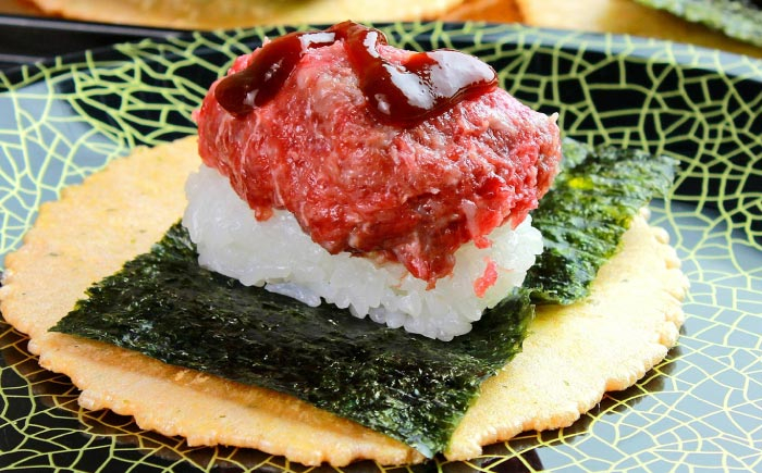 赤身馬肉と馬脂を混ぜてペースト状にすることで、大トロの味わいに!