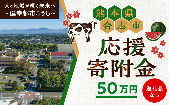 〜健幸都市こうし〜として合志市の発展のために活用させていただきます。 【応援寄附金】熊本県合志市 1口 50万円 返礼品なしのご寄附 【合志市役所】 [AYBZ004]