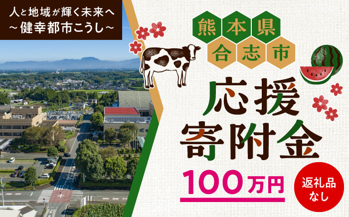 〜健幸都市こうし〜として合志市の発展のために活用させていただきます。 【応援寄附金】熊本県合志市 1口 100万円 返礼品なしのご寄附 【合志市役所】 [AYBZ005]