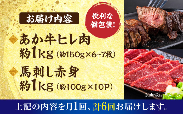 【全6回定期便】熊本の贅沢 あか牛 ヒレ肉 約1kg 霜降り 馬刺し…