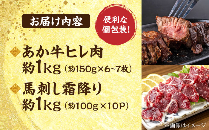 熊本の贅沢を食べ比べ!あか牛・ヒレ肉と霜降り馬刺しの堪能セット! 熊本の贅沢 あか牛 ヒレ肉 約1kg 霜降り 馬刺し 約1kg 堪能セット 【合同会社 たべたせいか】 赤牛 和牛 牛肉 馬肉 牛 馬 肉 霜降り ヒレ ヘルシー 冷凍 熊本県 [AYCB041]