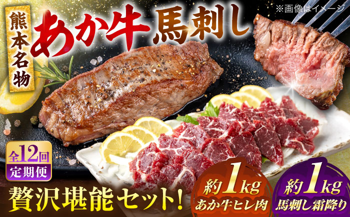 熊本の贅沢を食べ比べ!あか牛・ヒレ肉と霜降り馬刺しの堪能セット! 【全12回定期便】熊本の贅沢 あか牛 ヒレ肉 約1kg 霜降り 馬刺し 約1kg 堪能セット 【合同会社 たべたせいか】 赤牛 和牛 牛肉 馬肉 牛 馬 肉 霜降り ヒレ ヘルシー 冷凍 熊本県 定期便 [AYCB044]