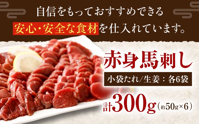 本場熊本から産地直送!おいしい馬刺しをお届けします。 熊本 馬刺し 赤身 計300g(約50g×6個) / ばさし バサシ 馬刺 赤身 あかみ 馬肉 冷凍肉 【くまもと食彩の力】[AYAN003]