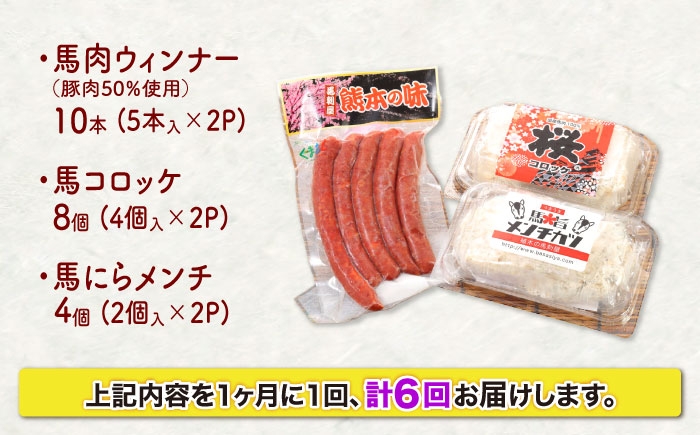 馬刺しの本場「熊本」より国産馬肉のお惣菜3点セットをお届け! 【全6回定期便】『純国産』熊本の味「桜」 国産 馬肉 お惣菜 3点セット 約1240g ウインナー コロッケ メンチカツ【有限会社 九州食肉産業】 馬肉 桜肉 馬 うま ウマ ヘルシー 小分け セット 冷凍 食品 ウィンナー ニラ メンチ 揚げ物 惣菜 熊本県 合志 合志市 [AYCN120]