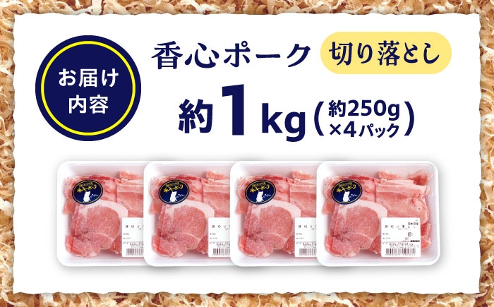無薬飼料と阿蘇の天然ミネラルで育った香心ポークをご賞味ください! 『香心ポーク』切り落とし 約250g×4パック(計約1kg)豚肉 冷凍 熊本県産 【有限会社 コーシン】 豚肉 切り落とし 国産 熊本県 熊本 冷凍 1kg 小分け 250g 炒め物 豚汁 豚丼 肉じゃが 生姜焼き 小間切れ 煮物 万能 使いやすい こま切れ おかず セット [AYCK024]